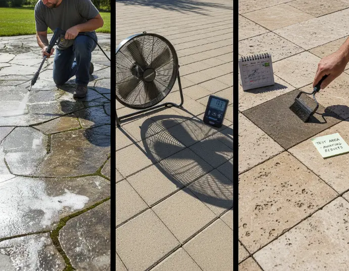 - Make it bone dry: The surface must be completely dry before you apply the sealer. Wait at least 24 hours after cleaning or after any rain. Sealing a damp surface can trap moisture and cause a milky-white haze.