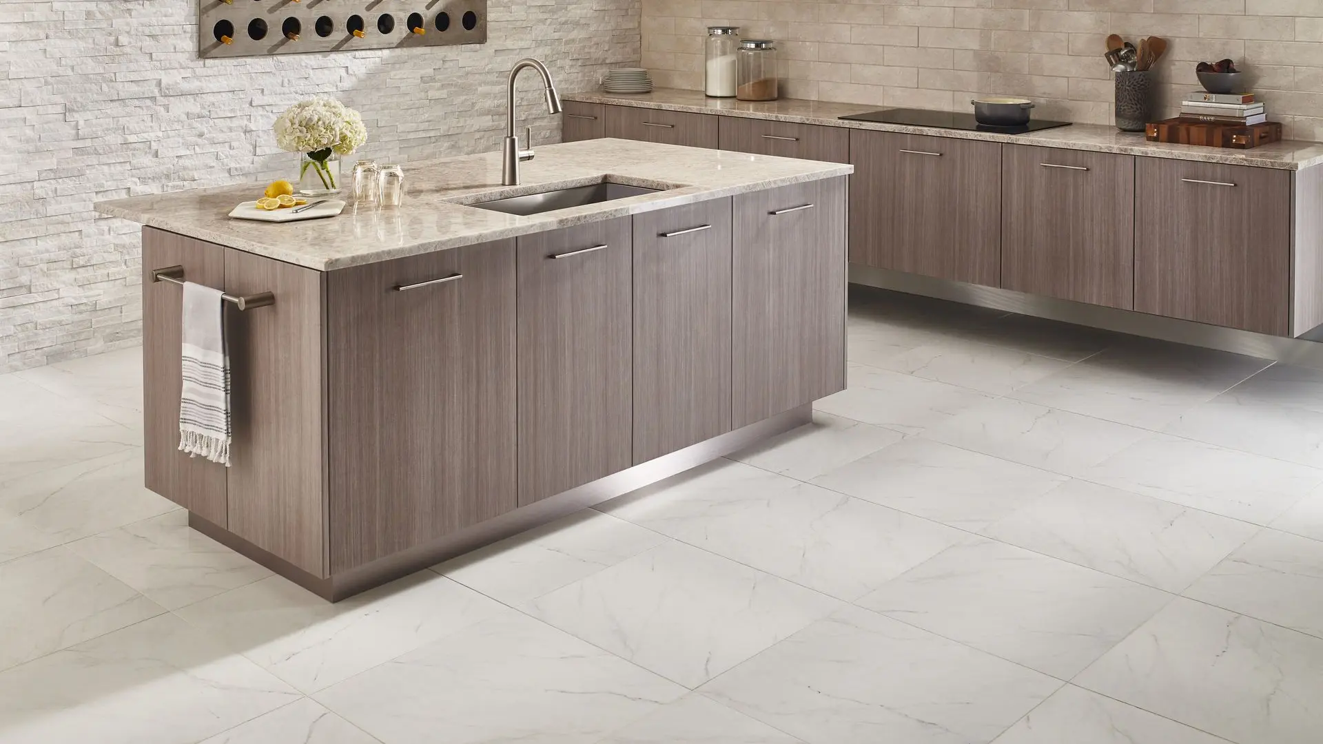 Large-format tiles (24x48 and larger) are taking over. By minimizing grout lines, these oversized tiles create a sleek, expansive, and luxurious aesthetic; a key feature in modern kitchen flooring and open-concept designs.