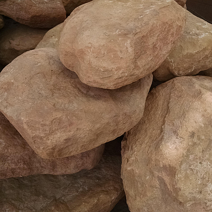Thin blobs of rock. 2-12" random heights, 4-18" random lengths, natural cleft face, natural edge edge, tumbled, non-rectangular. We used to call this "mosaic."